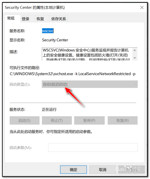 1.security center启动类型显示“主动”选项框为灰色无法禁用