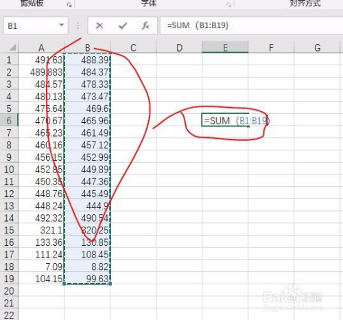 第四:在选择的单位呈现=SUM(),在括号内添加需要计较区域。