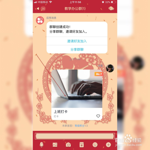 第二步,鄙人方式的群应用中我们可以找到打卡的图片选项,点击此图标