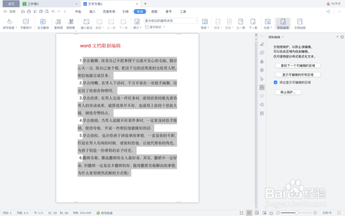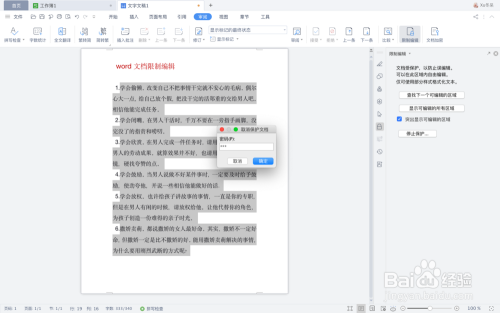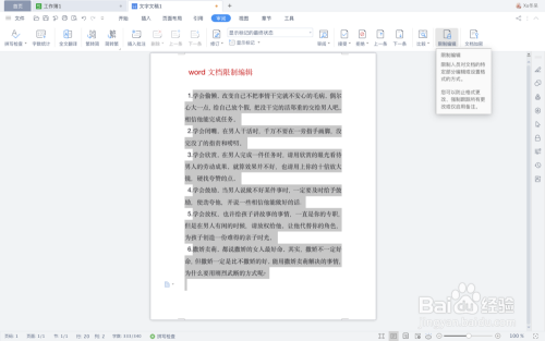 点击菜单栏“核阅➡️限制编纂”。