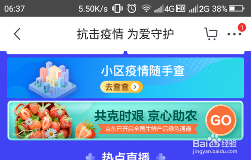 打开【手机京东客户端】,选择上方的【共克时艰】进入本家儿界面。