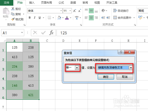 就能看到独一不反复的数据值被布景色标识表记标帜出来了,结果如下图所示: