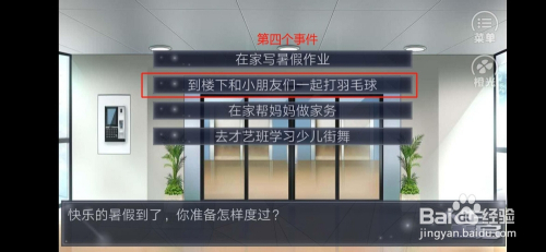 选择第二个事务选项“到楼下和小伴侣们一路打羽毛球”(+20点体魄)
