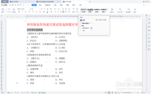 光标移到两个选项内容之间,按[Tab]键,此光阴标后面的文字移动与标尺制表位对齐。