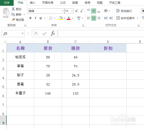 如下图为原始数据区域,需要计较扣头价钱。
