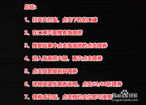 - tips:必然要在支付宝口碑页面搜刮海底捞,直接在支付宝首页搜刮是不可的!