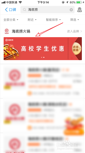 这样就进入海底捞暖锅页面了,我们下滑再次找到高校学生优惠后面的【点击领券】