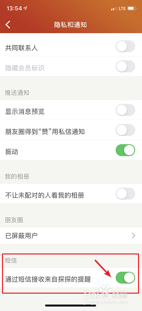 5、点击封闭【经由过程短信接收来自探探的动静提醒】