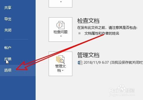 然后点击下拉菜单中的选项菜单项。