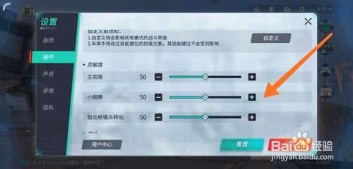 找到活络度一栏,可以调整本家儿视角、小眼睛、狙击枪镜头动弹三个活络度。