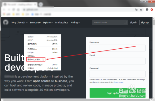 打开网页后,在页面空白,点击鼠标右键,选择【翻译当作简体中文】