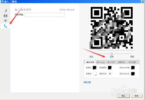 第四步,点击德律风,然后内容框中输入德律风号码,再按照需要对二维码样式进行选择,如图所示: