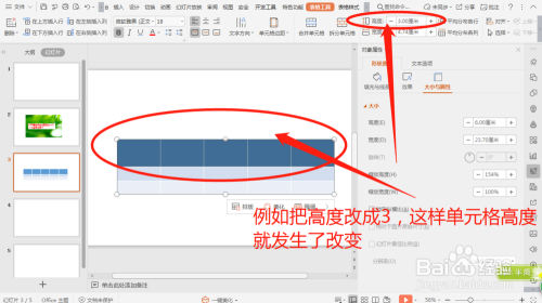 例如把高度改当作3,这样单位格高度就发生了改变;