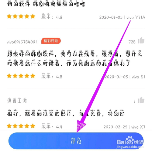 第七步,写下我们的评论,给APP打分,点击【提交】就可以给韩剧tvapp评分了。
