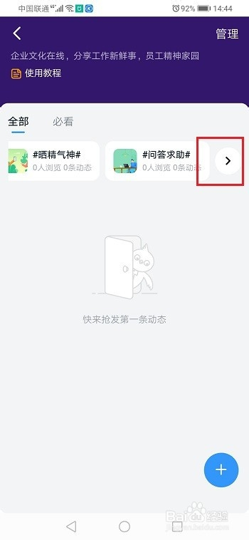 第一步打开钉钉,进去圈子,点击话题旁边的箭头图标