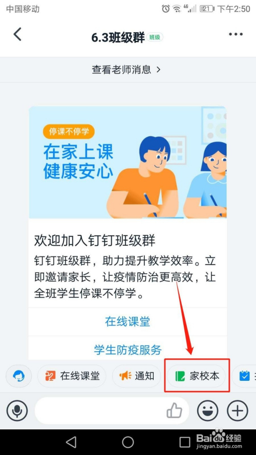 进入班级群界面,点击页面右下角“家校本”。