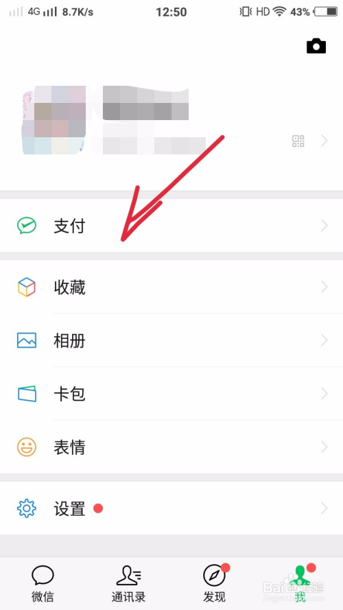 第一步,登岸手机中的微信,点击我的,然后点击支付选项,如图所示: