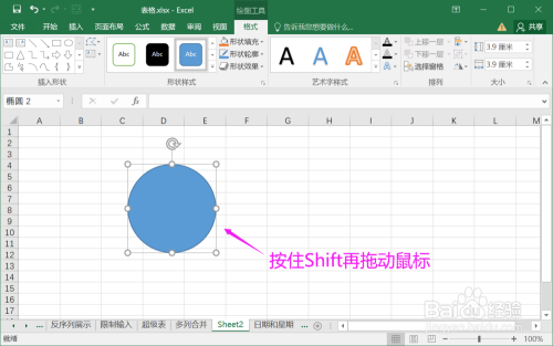 4.按住Shift再拖动鼠标,就画出了圆。