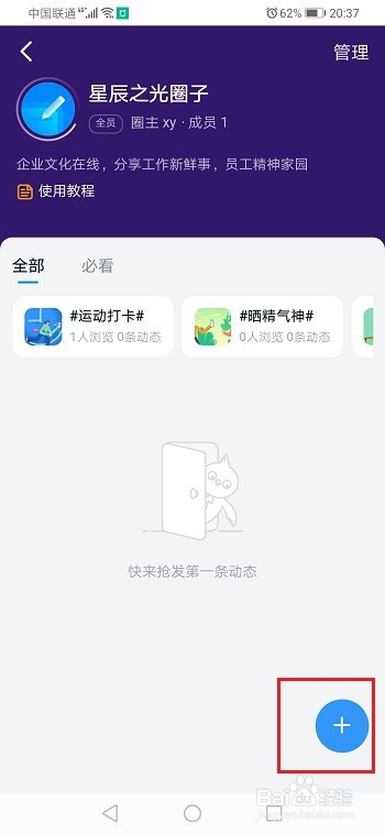 第二步进去圈子之后,点击+号图标,如下图所示: