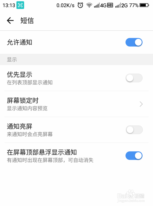 4.找到【短信】今后,点击下方的【应用通知】菜单
