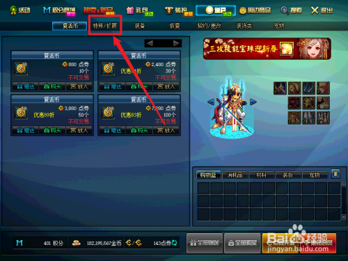 点击【特别/扩展】选项。