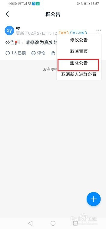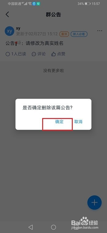 第五步弹出框之后,点击确定,就当作功删除群通知布告了