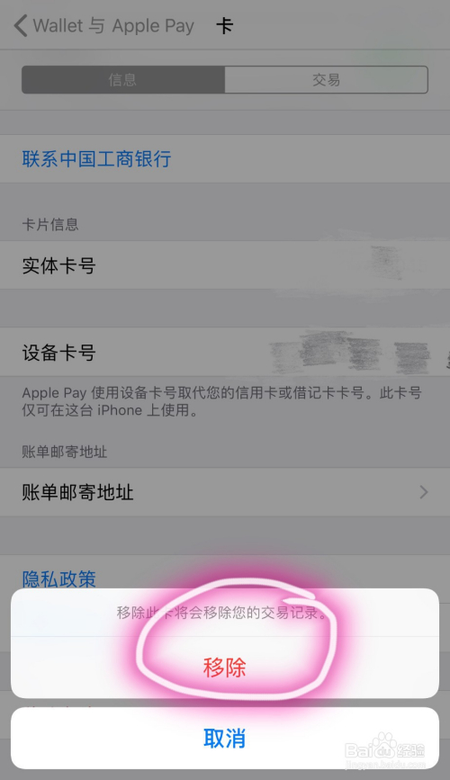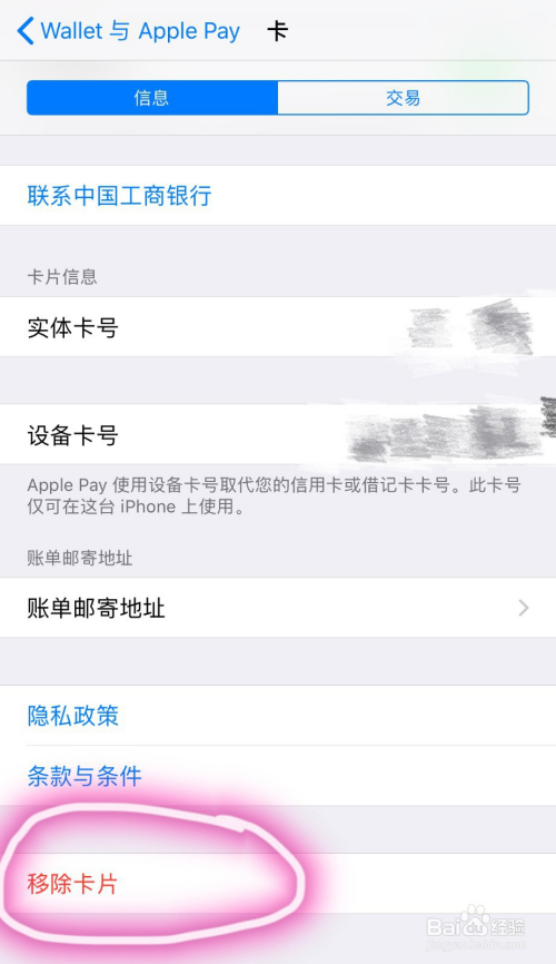 第四步,进入银行卡明细界面后,点击下方“移除卡片”选项。