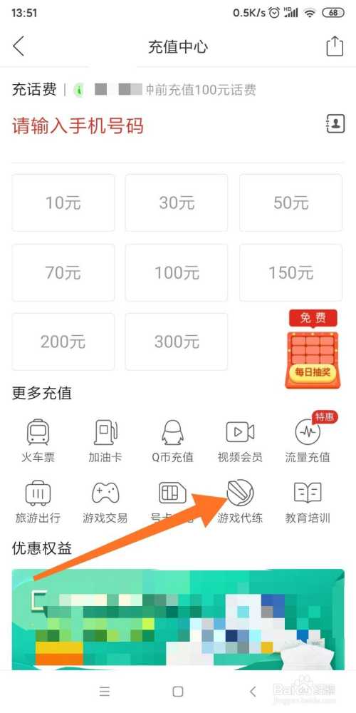 3.如图所示,我们点击箭头所指的“游戏代练”按钮。