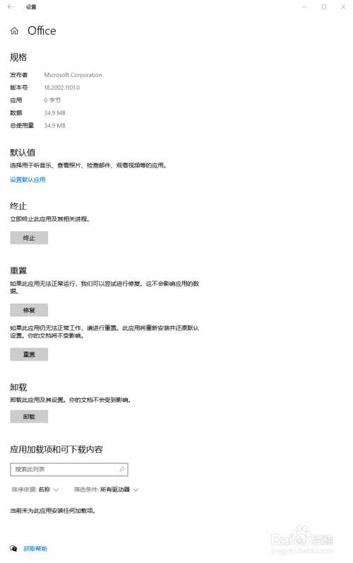 在“重置”项面前目今,点击“修复”
