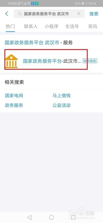 第二步在搜索框搜刮国度政务办事平台,点击进去,如下图所示: