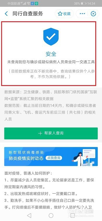第五步人脸识别验证后,就可以查询是否同业密接人员,显示的平安,代表没有,如下图所示: