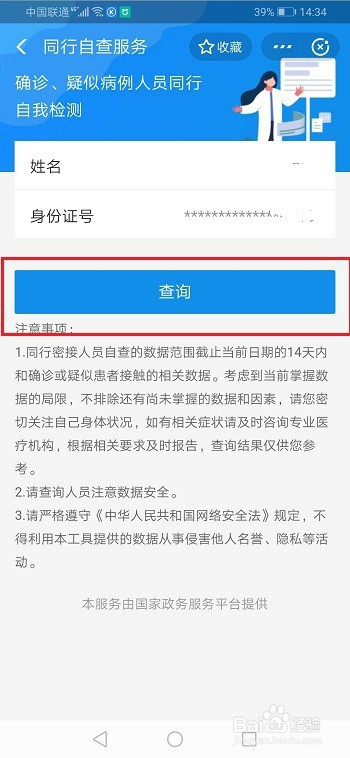 第四步进去同业密接人员自查之后,点击查询,如下图所示: