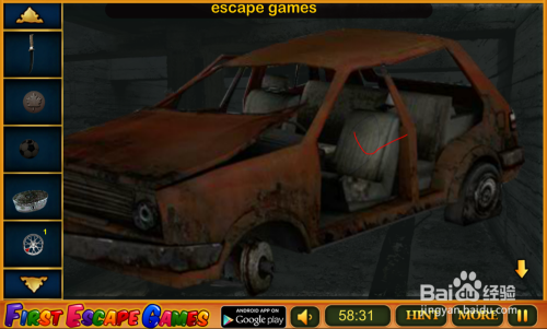 烧毁汽车处输入5984,车盖打开,获得手电筒。