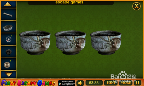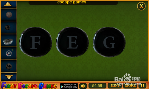 集齐三个碗,排放在一路,手电筒照射,获得足球、金币和图标。同时,获得字母提醒FEG。