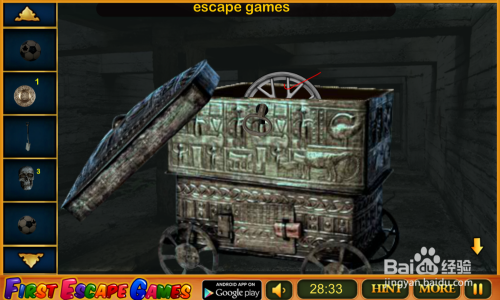 四个网球安放在提醒处,铁桶打开,获得盒子。