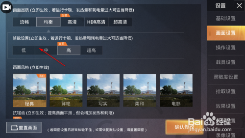 在【帧数设置】里,点击下【中】或者【低】按钮。