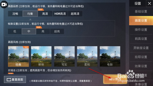 3.在【画面品质】里,点击【平衡】或者【流利】。