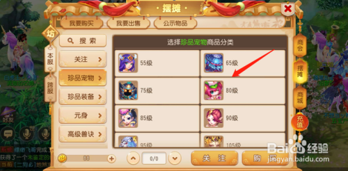 在我们选择好与本身品级相合适的宠物之后,点击右下角的“采办”。
