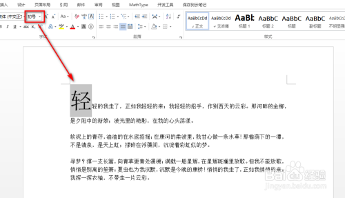 一般环境下,将首字的字体大小加大,可以看到并不是下沉的结果,具体如下图所示: