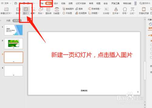 1-新建一页幻灯片,点击插入图片;