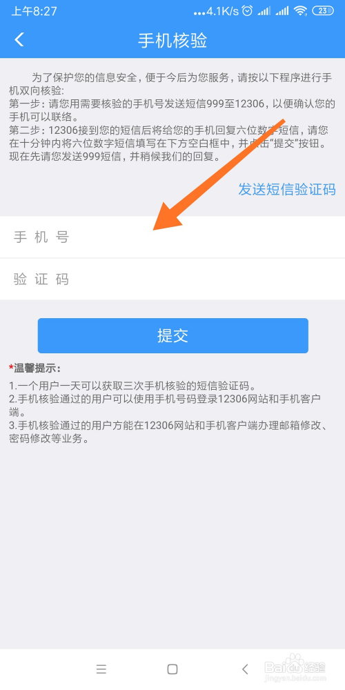 填写要核验的手机号码。