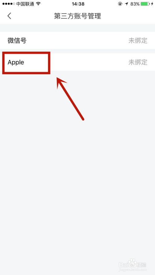 3.点击第三方账号办理,接着点击Apple,即可绑定本身的苹果账号。