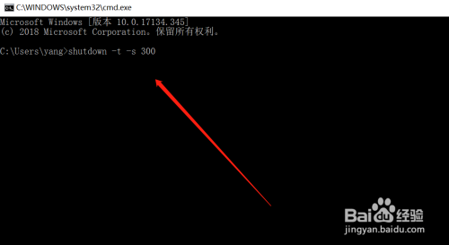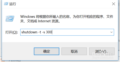 然后在窗口中输入“shutdown -s -t 300“,(数据可更改,300暗示300s),回车确定即可。