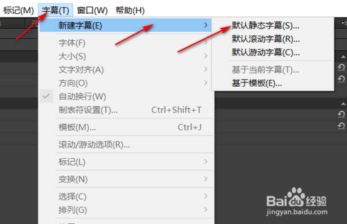 接着,我们点击上方的【字幕】选项卡,点击【新建字幕】选项,再点击【默认静态字幕】即可。