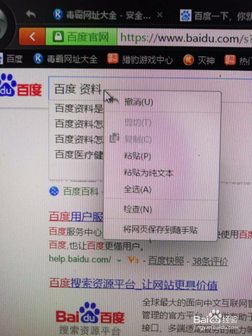 鼠标放在百度“百度资料”小窗口右击鼠标。