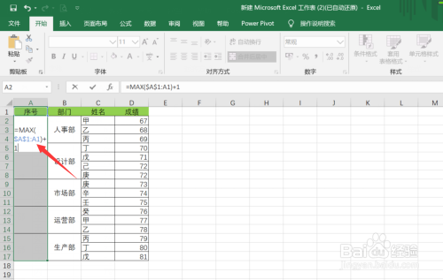 第一步:打开需要操作的Excel表格,先框选要填充序号的单位格,输入 =max ,双击电脑弹出来的提醒MAX