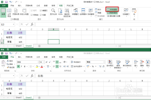 如下图为一个工作簿,此中有2个工作表,需要可以同时查看两个工作表的内容。