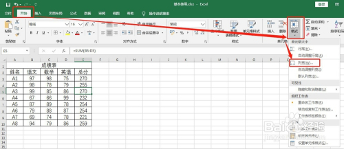第三步:在起头里面找到格局,在格局下拉栏里面点击列宽选项,如图