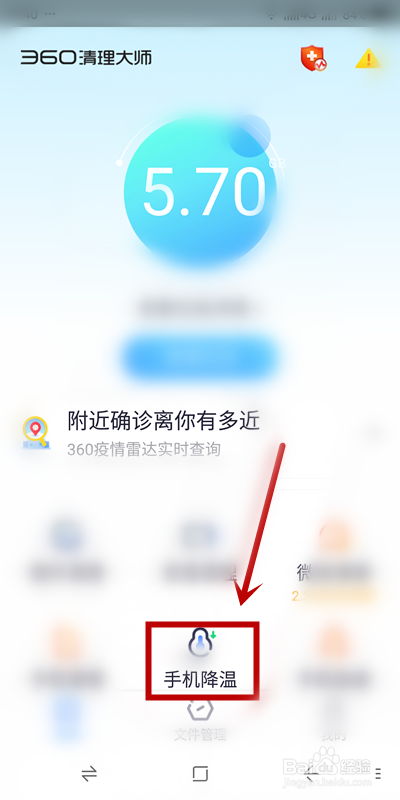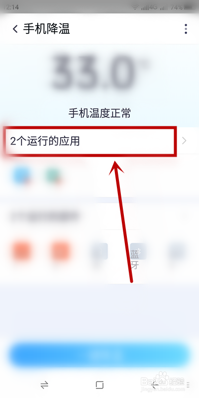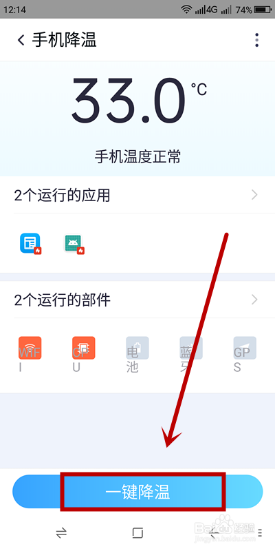 进入【手机降温】页面后,可以找到造当作手机温度高的原因。单击【一键降温】,就能把可以停下的应用和部件进行终止