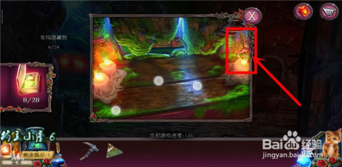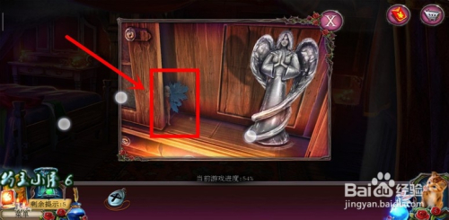 在中边窗子上边可以收取第四个埋没物,这里因为看不到,可以多点几下,是一个黄色的球。